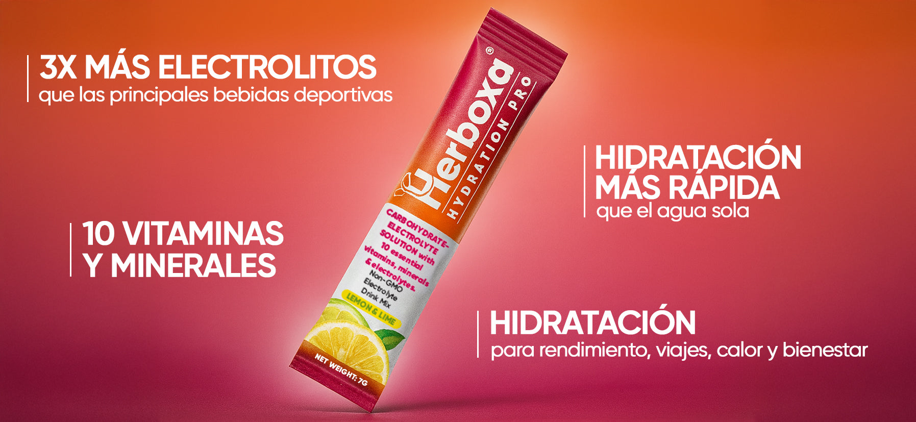 Herboxa® Hydration Pro ofrece una mezcla equilibrada de electrolitos y carbohidratos de rápida absorción para ayudar a tu cuerpo a absorber el agua de manera más efectiva que solo con agua.